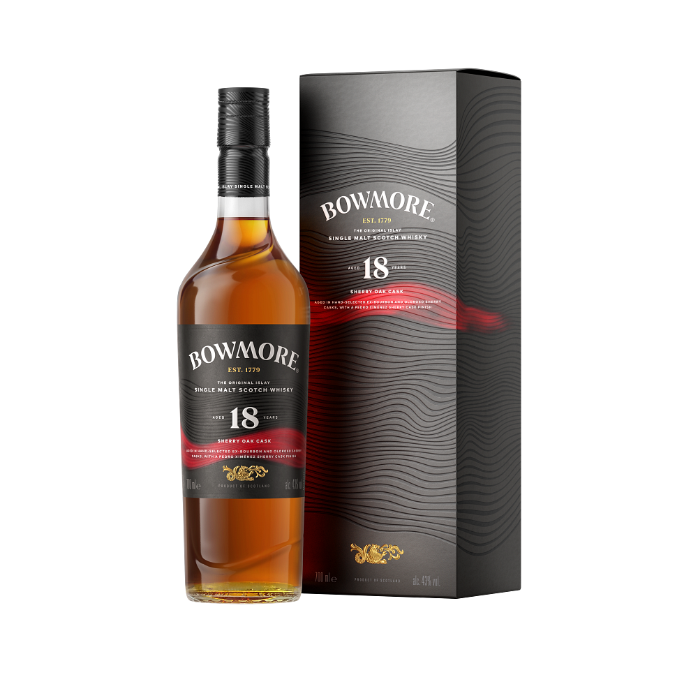 Bowmore 18 Year Old Sherry Oak Cask Single Malt Scotch Whisky 70cl – Rich Islay Whisky with Sherry Cask Maturation