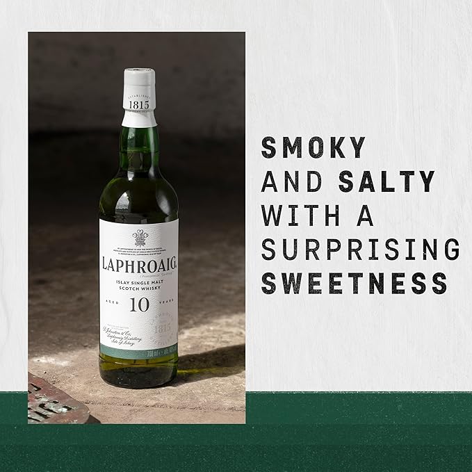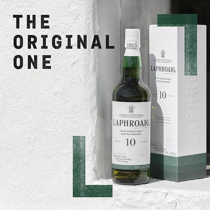 Laphroaig 10 Year Old Islay Single Malt Whisky is a world-renowned Scotch celebrated for its unmistakably bold, smoky character. Crafted on the rugged coast of Islay, this iconic whisky is matured for a full decade in ex-bourbon oak barrels, allowing the spirit to develop its signature combination of peat smoke, sea salt, sweetness, and complexity. With its powerful flavour profile and rich heritage, Laphroaig 10 is a must-have for whisky lovers who appreciate true Islay intensity.