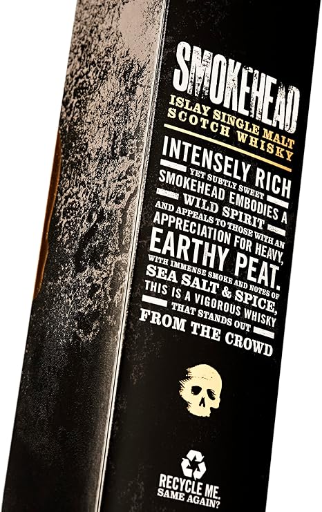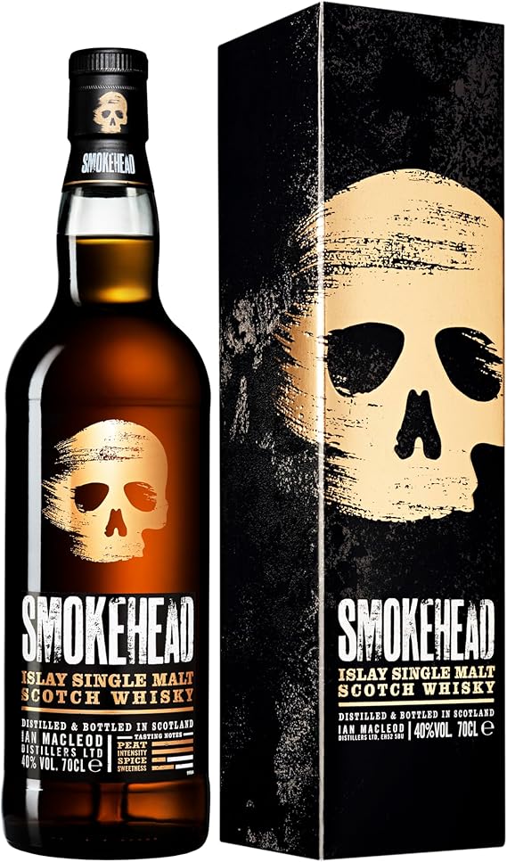 Smokehead Islay Single Malt Scotch Whisky 70cl is a bold, intensely peated whisky designed for drinkers who love big flavours and unapologetic attitude. Distilled on the rugged island of Islay—famous for its smoky, coastal malts—Smokehead delivers a powerful combination of rich peat smoke, sea salt, spice, and sweetness. Presented in a striking, skull-themed giftbox, this edition makes a dramatic statement and is perfect for gifting or adding to a whisky collection.