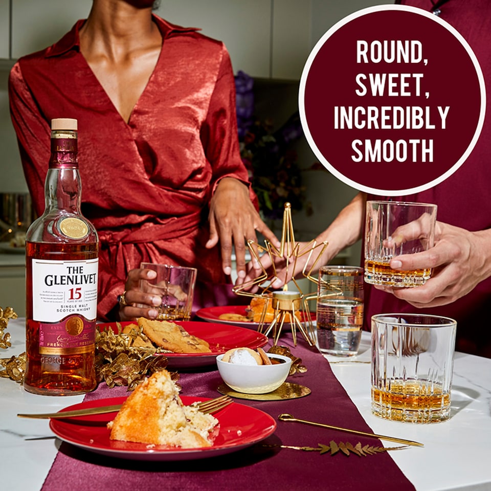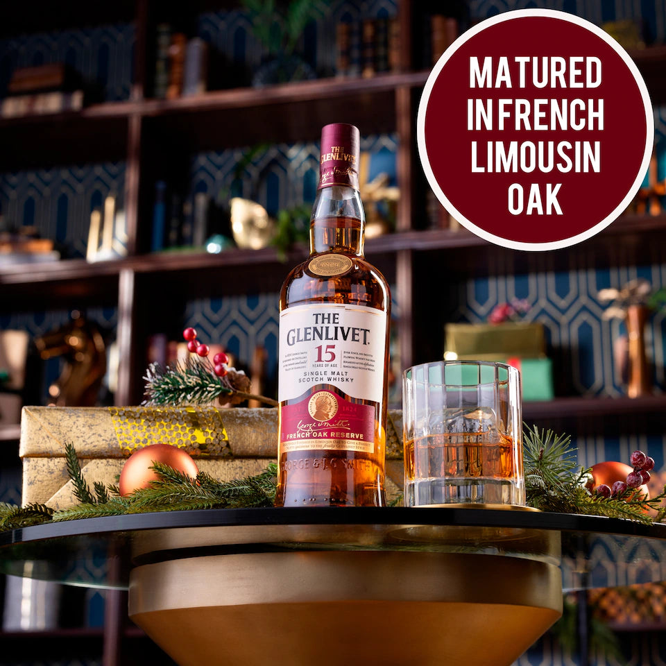 The Glenlivet 15 Year Old “French Oak Reserve” is a refined Speyside single malt Scotch whisky, bottled at 40% ABV and presented in a 70 cl bottle. Its unique character stems from a selective finishing in French Limousin oak casks, which significantly influences its flavour profile.